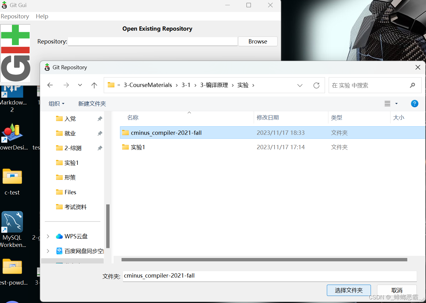 a. 打开git gui,选择之间clone下来的文件夹。(注意若clone之后在网页端有修改,则需要重新clone)