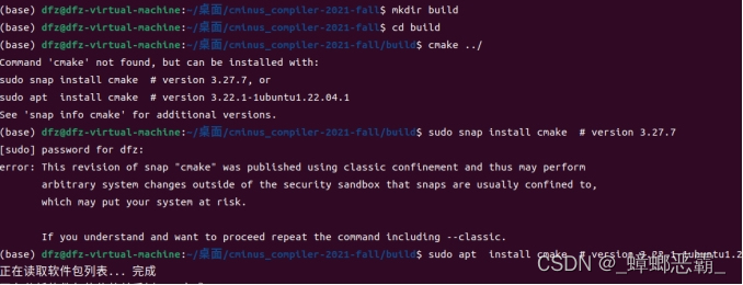 我是直接用的vmware中的ubuntu22.04(建议是20.04,不过我用22.04也没遇到什么问题),这个计算机系统、操作系统、数据挖掘(专选)都要求用了,就没用新的环境。另外,正如前面第一段所说,要注意一下各个文件、文件夹之间的联系。不要一上来就直接打开src/lexer/lexical_analyzer.l开始补全,下面是可能会忽略的几个点:
