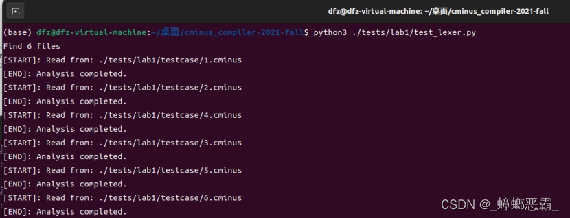 执行指令python3 ./tests/lab1/test_lexer.py来查看,结果通过了6个测试样例: