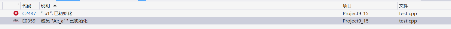#include<iostream> using namespace std; class A { public: A() :_a1(1), _a2(1), _a1(3) {} private: int _a1; int _a2; };运行之后,会报一个已经被初始化的错误,如下所示: