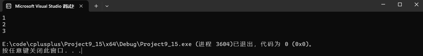 #include<iostream> using namespace std; class A { public: A(int a1=1, int a2=2, int a3=3) :_a1(a1), _a2(a2), _a3(a3) { } void Print() { cout << _a1 << endl; cout << _a2 << endl; cout << _a3 << endl; } private: int _a1; int _a2; int _a3; }; int main() { A a; a.Print(); return 0; }输出为: