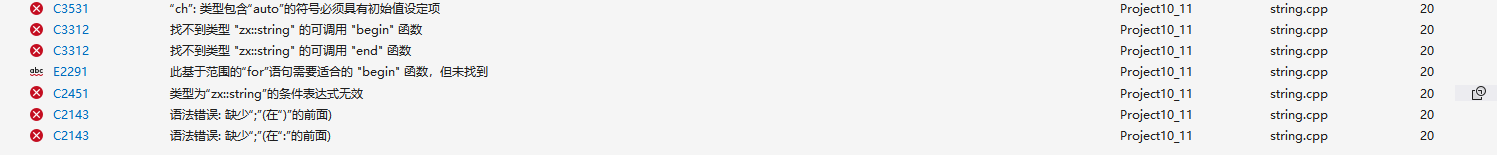 那我们模拟实现string能支持范围for遍历嘛?我们可以写个代码来测试一下:测试代码是写到test.cpp的zx类域里面