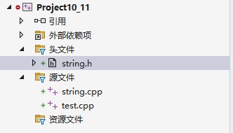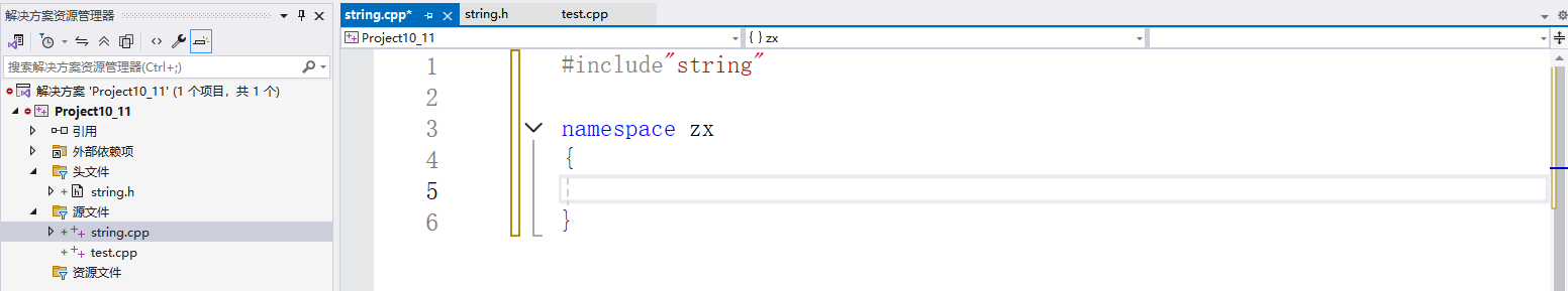 在string.cpp和test.cpp的文件中也会新建一个同名的类域,多个文件相同的namespace会合在一起。如下所示: