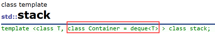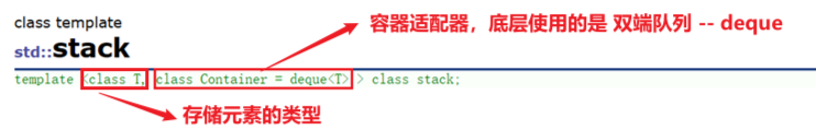 Container实现栈时用到的底层容器,这里为缺省参数,缺省结构为 双端队列deque