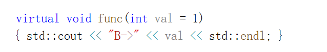 virtual void func(int val = 1) { std::cout << "A->" << val << std::endl; }