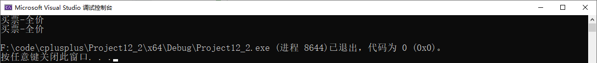 可以发现无论传入的对象是谁,执行的都是父类的BuyTicket函数,这里不满足多态的条件(因为我们把virtaul给删除了,不满足条件二)。
