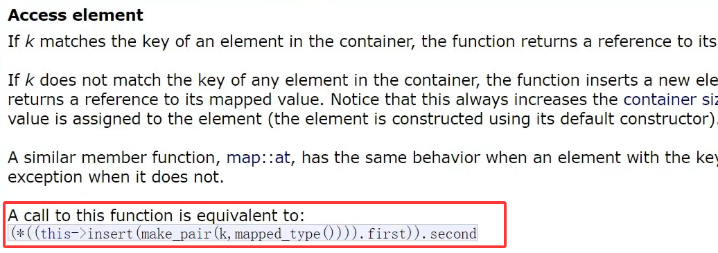 首先,方括号里面给了一个key以后,不管这个key是否存在,就直接插入一个pair键值对,第一个参数是key,第二个参数是调用对应的默认构造函数。