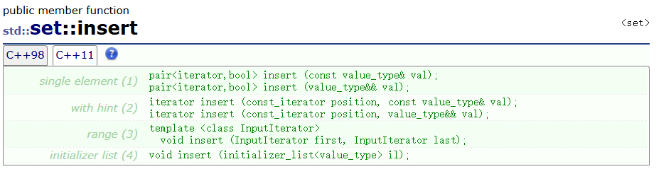 它支持插入单个元素,插入一个迭代器区间,和initializer插入。