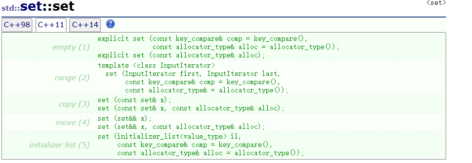 set的构造函数如下所示: