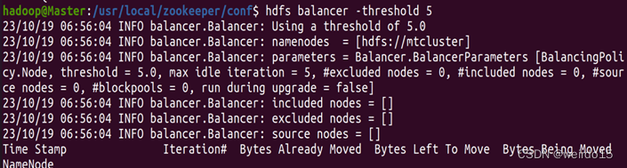 - 设置负载均衡并在任意节点执行:hdfs balancer -threshold 5(其中参数数值5表示集群内所有节点存储百分比差距要在5%以内)