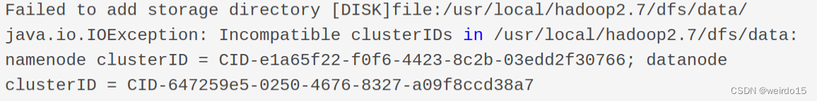 ④hadoop:datanode启动失败:errot org.apache.hadoop.hdfs.server.datanode.DataNode:Initialization failed for Block pool <registering> (Datanode Uuid e1dfcbe0-396b-48d7-93bb-eb4030d13eb8) service to Master/xxxxxx:xxxx。Exiting.java.io.IOException: All specified directories have failed to load.