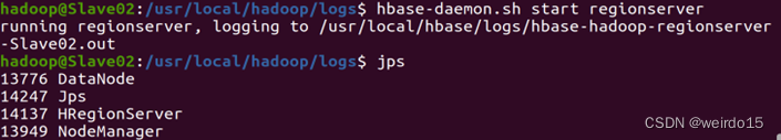 - 在新增节点上调起HRegionserver进程: