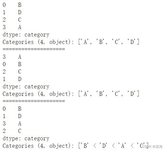 cat_series.cat.reorder_categories(['D','B','C','A'],ordered=True,inplace=True)