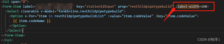 要在表单中的label-width 前面加上 : 这样就能解决问题了