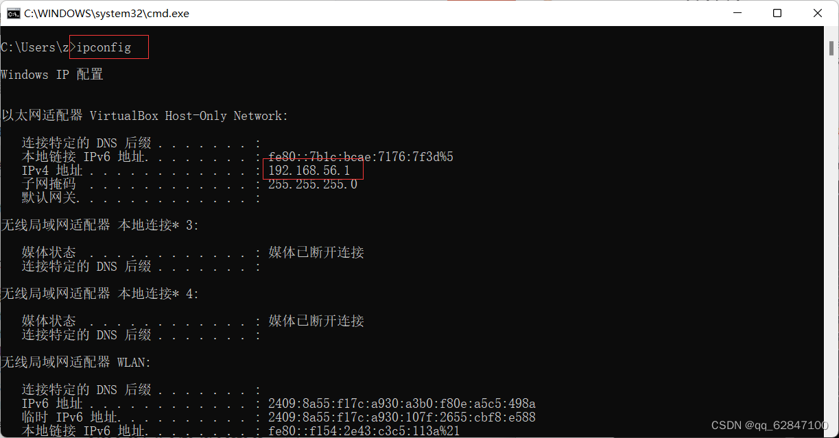 - 查看网络连接详细信息,宿主机IPv4地址: