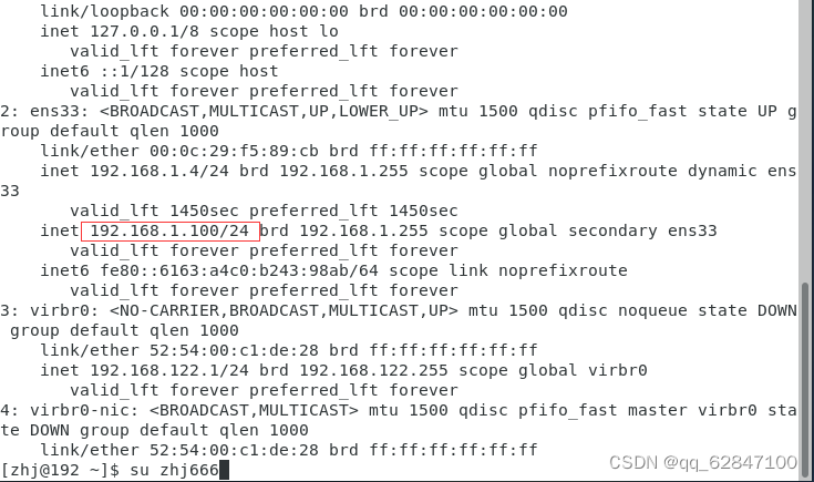 注意:IPADDR中192.168.1.100中的 1 需和网络虚拟机中的一致。