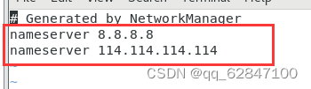 ·配置域名解析服务器,执行命令:vi /etc/resolv.conf,添加两个域名服务器
