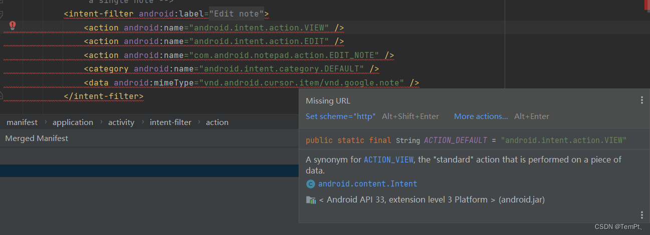 最后是intent-filter missing URL