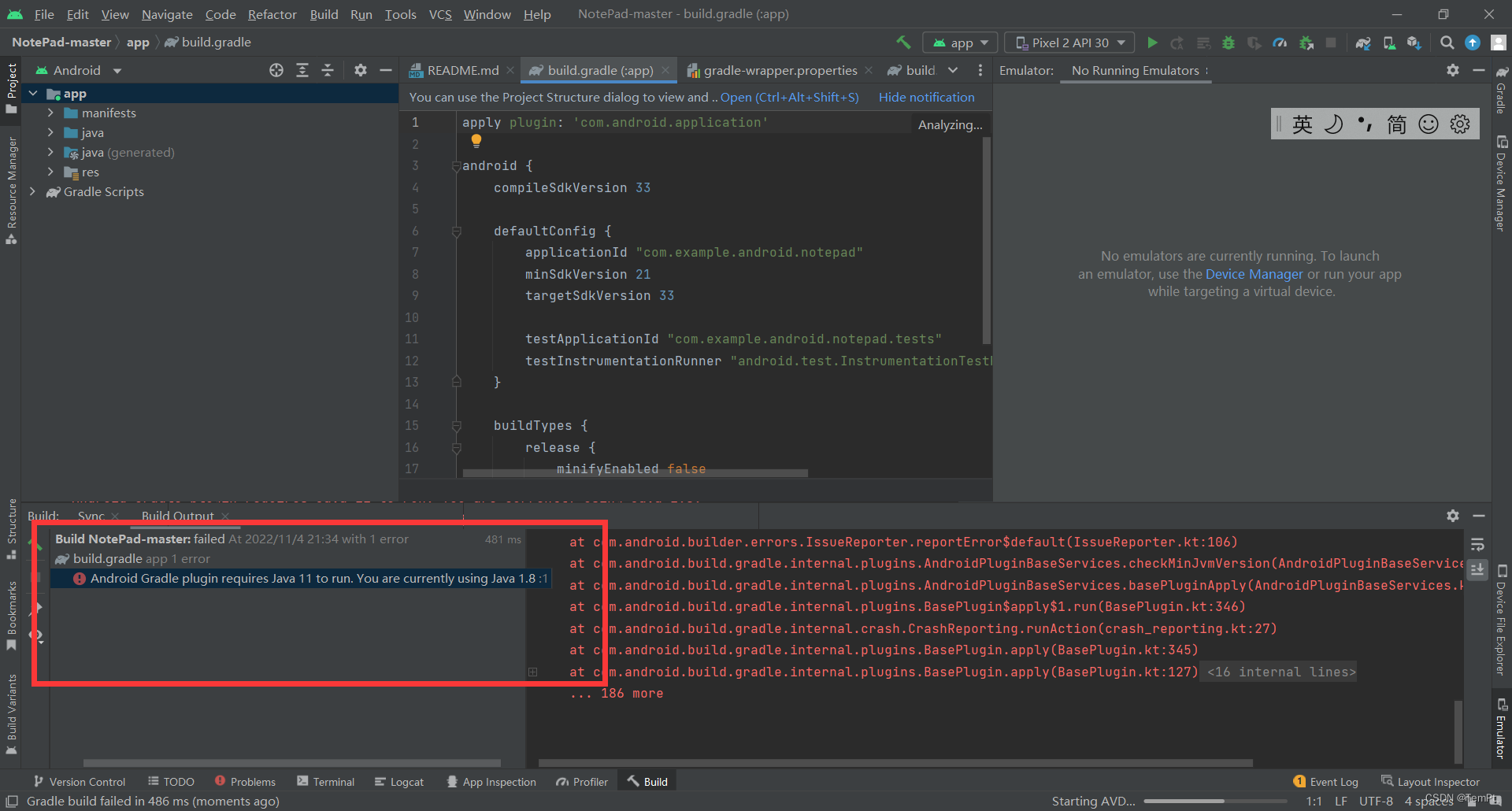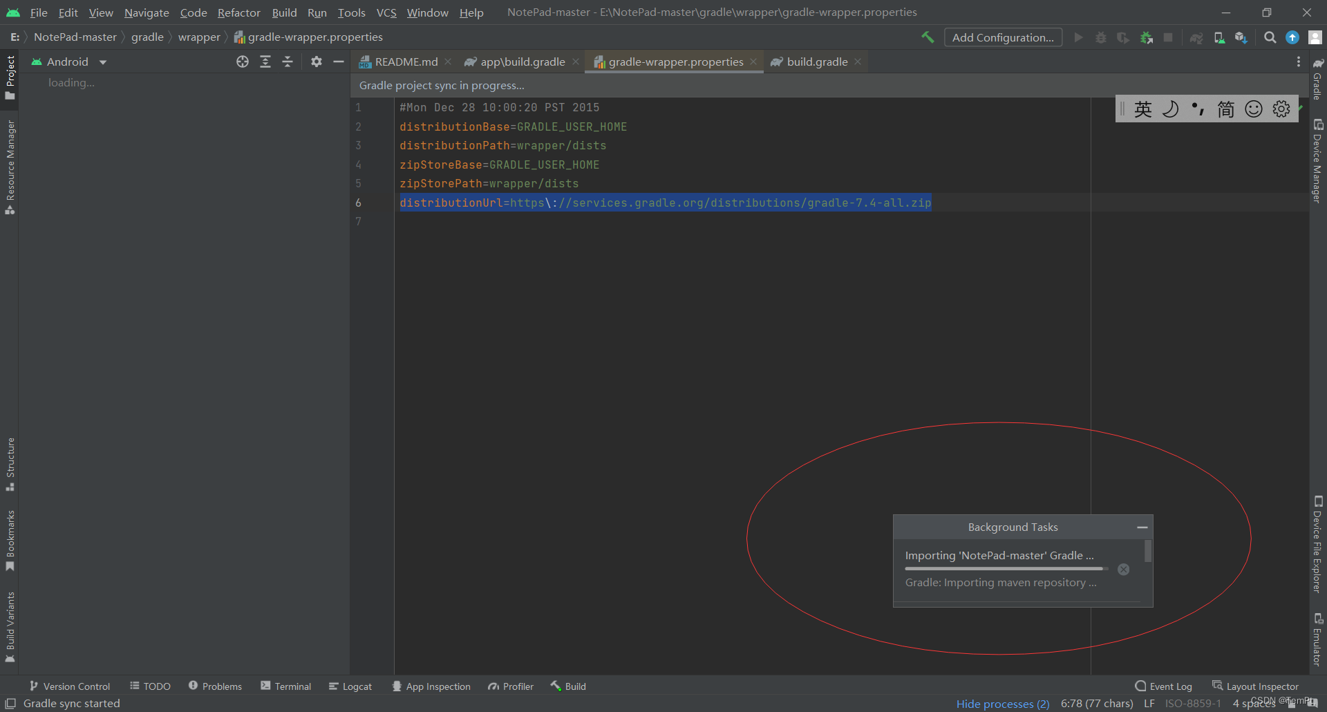 重启你的AS,打开Notepad项目我们可以看到他在自行安装gradle