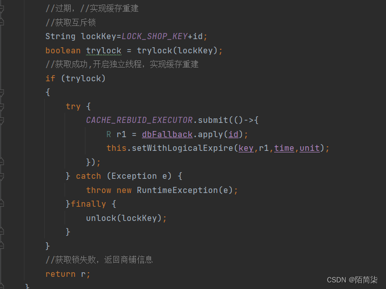 一般场景就是缓存中某一个Key过期的瞬间,对这个Key发生了大量的请求,缓存中没有数据,大量请求去读底层DB,可能会把底层数据库压垮。