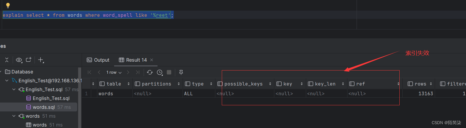 - 头部模糊查询,索引失效
