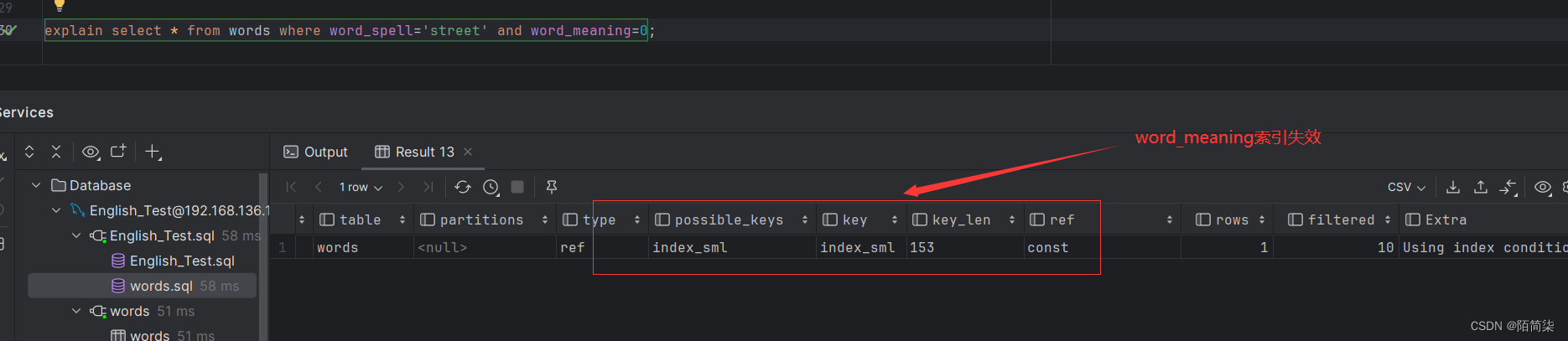 explain select * from words where word_spell='street' and word_meaning='n.街道';