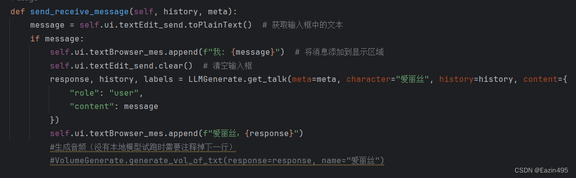 并且实现了将用户发送的消息显示并传给ai和播放语音