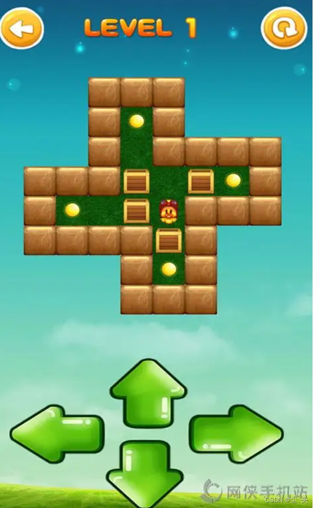 如图所示推箱子的基本元素为:人,箱子,目的地,墙、空地;