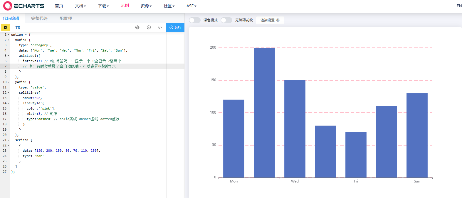 interval:1 // x轴标签隔一个显示一个 0全显示 2隔两个