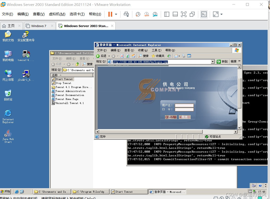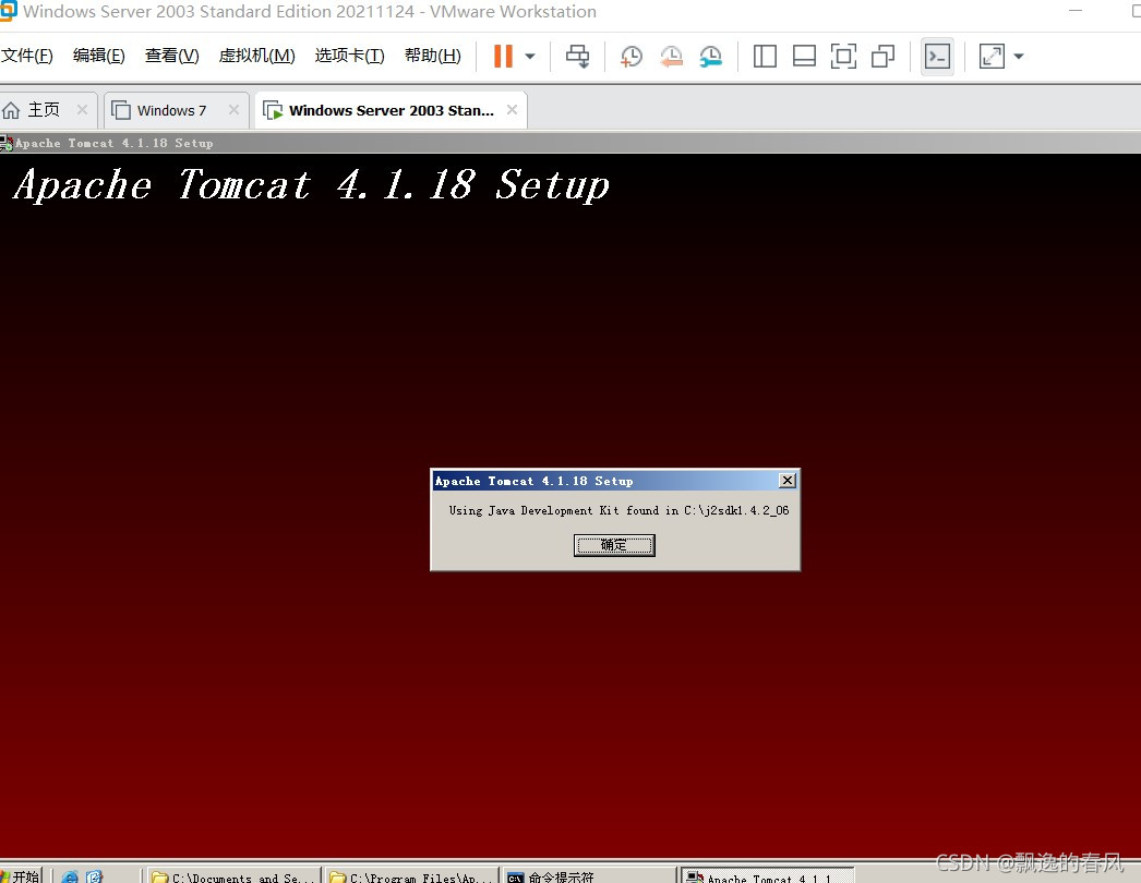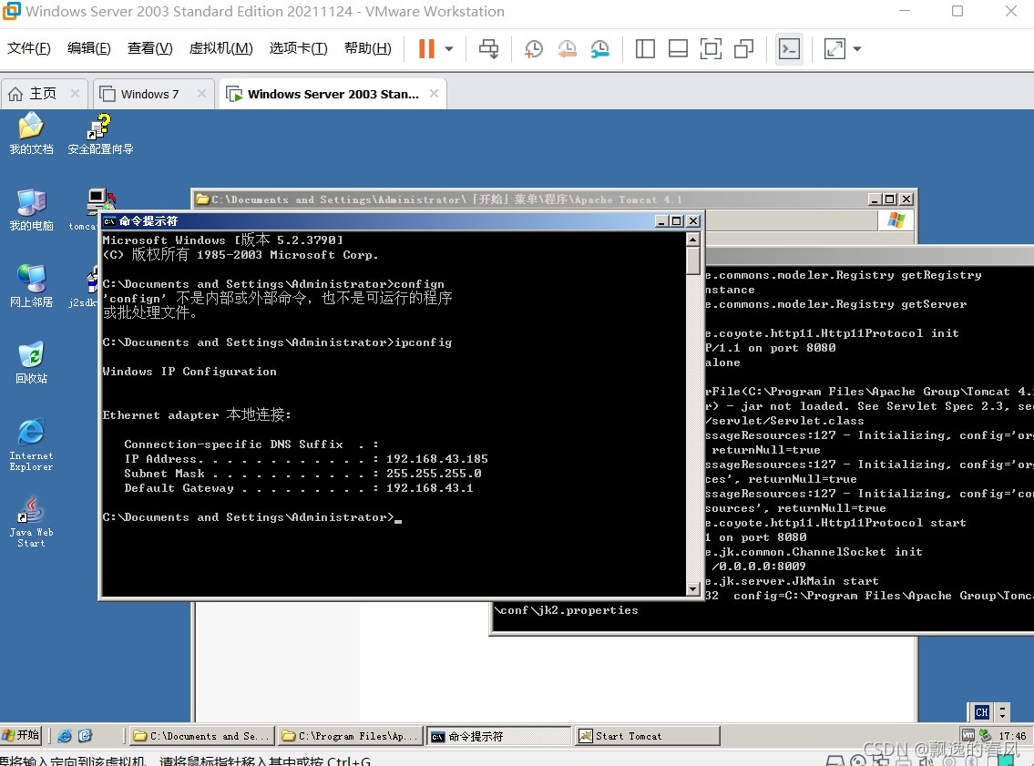 本文介绍了如何在Windows 2003虚拟机上安装和使用Tomcat。首先,需要安装JDK作为基础,接着进行Tomcat的安装。在识别并安装了JDK后,可以直接进行Tomcat的安装。安装完成后,启动Tomcat服务器。通过运行ipconfig获取服务器的IP地址,然后在浏览器中输入IP地址和默认的8080端口,可以成功访问到Tomcat的默认页面及文件夹。