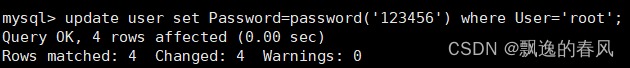 update user set Password=password('你的密码') where User='root';
