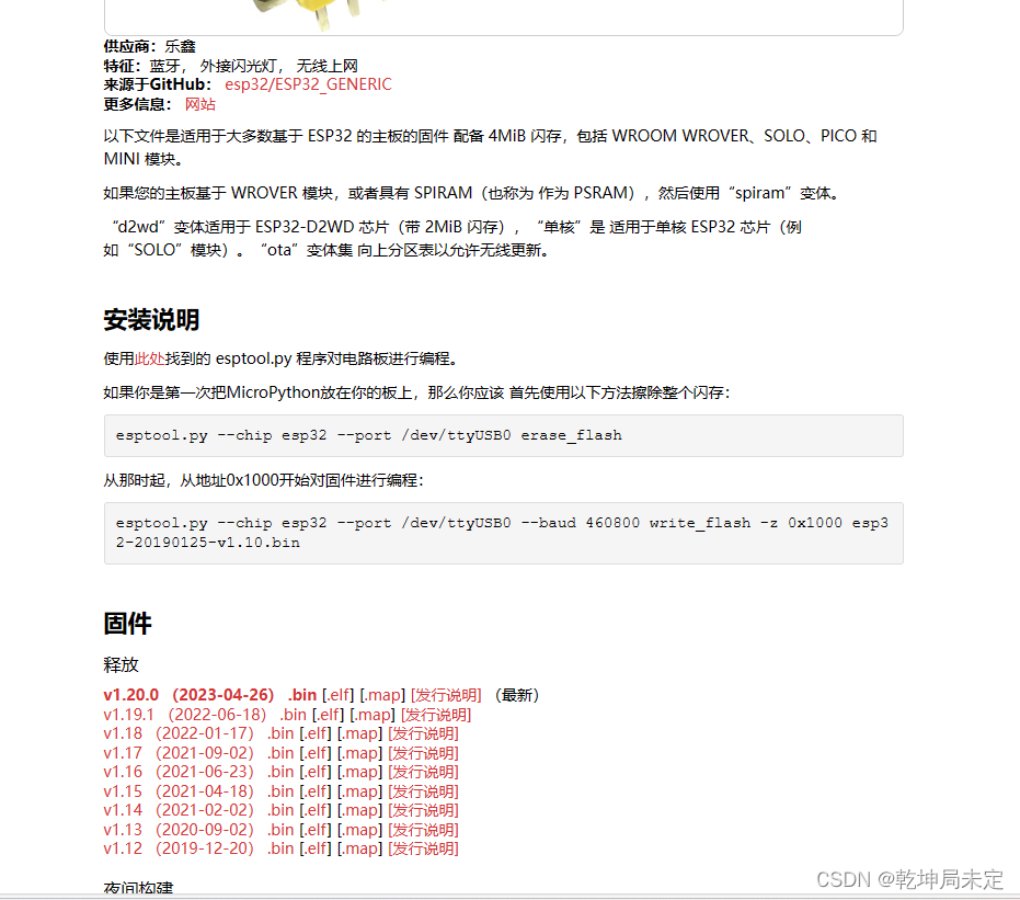 micropython官网下载烧录硬件(只有烧入成功进去才能用python进行编写代码,可以下载最新版本的esp32固件,edge浏览器翻译成中文慢慢找)