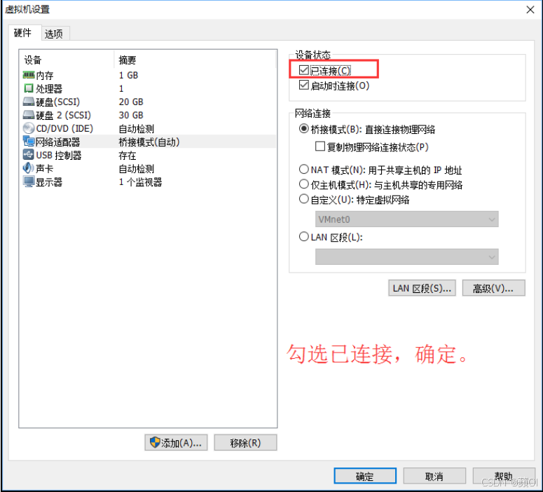 虚拟机问题:无法将网络更改为桥接状态:没有未桥接的主机网络适配器_无法将网络改为桥接状态,没有未桥接的主机网络适配器-优快云博客