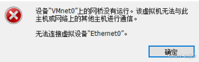 设备vmnet0上的网桥没有运行,无法连接虚拟设备Ethernet0 – 努力学习