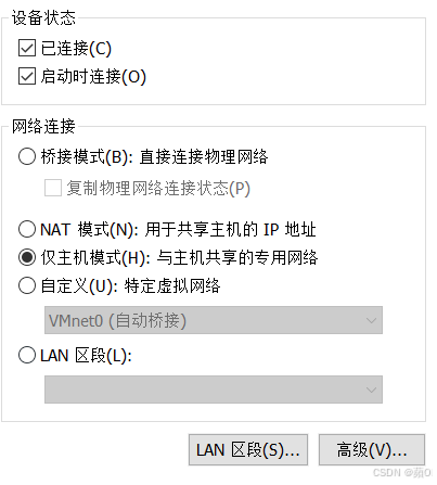① 什么是网络桥接模式:既虚拟机和本机的共用同一个局域网,都在同一个网段(eg:192.168.1.XXX)