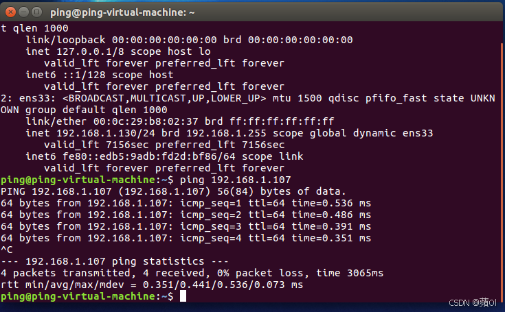 之后再重新,在虚拟机下选择桥接模式,就不会在报错了。ubuntn和win10都处于在同一个网段下,两者都ping的通。