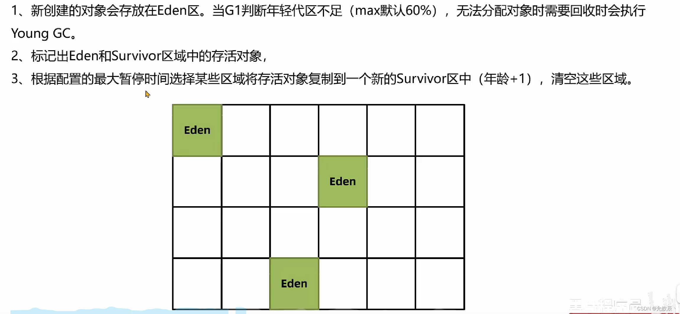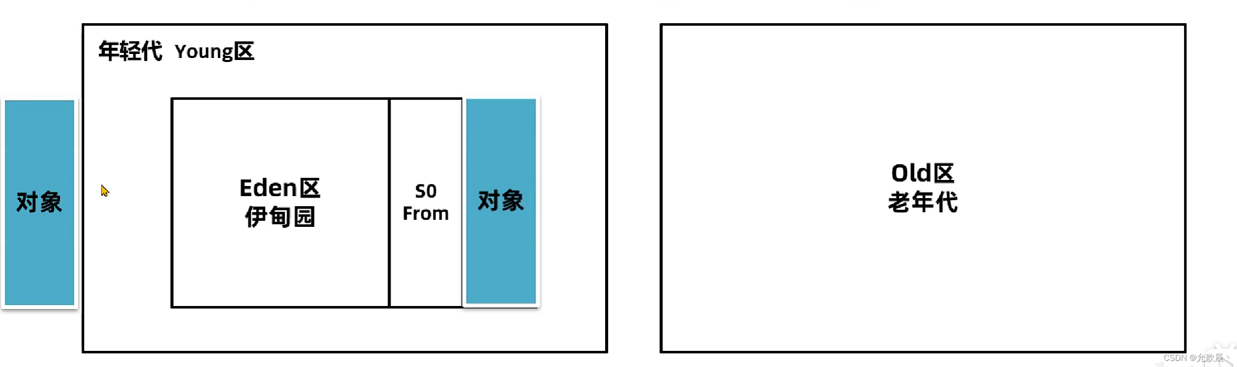 分代回收时,创建出来的对象,首先会被放入Eden伊甸园区。