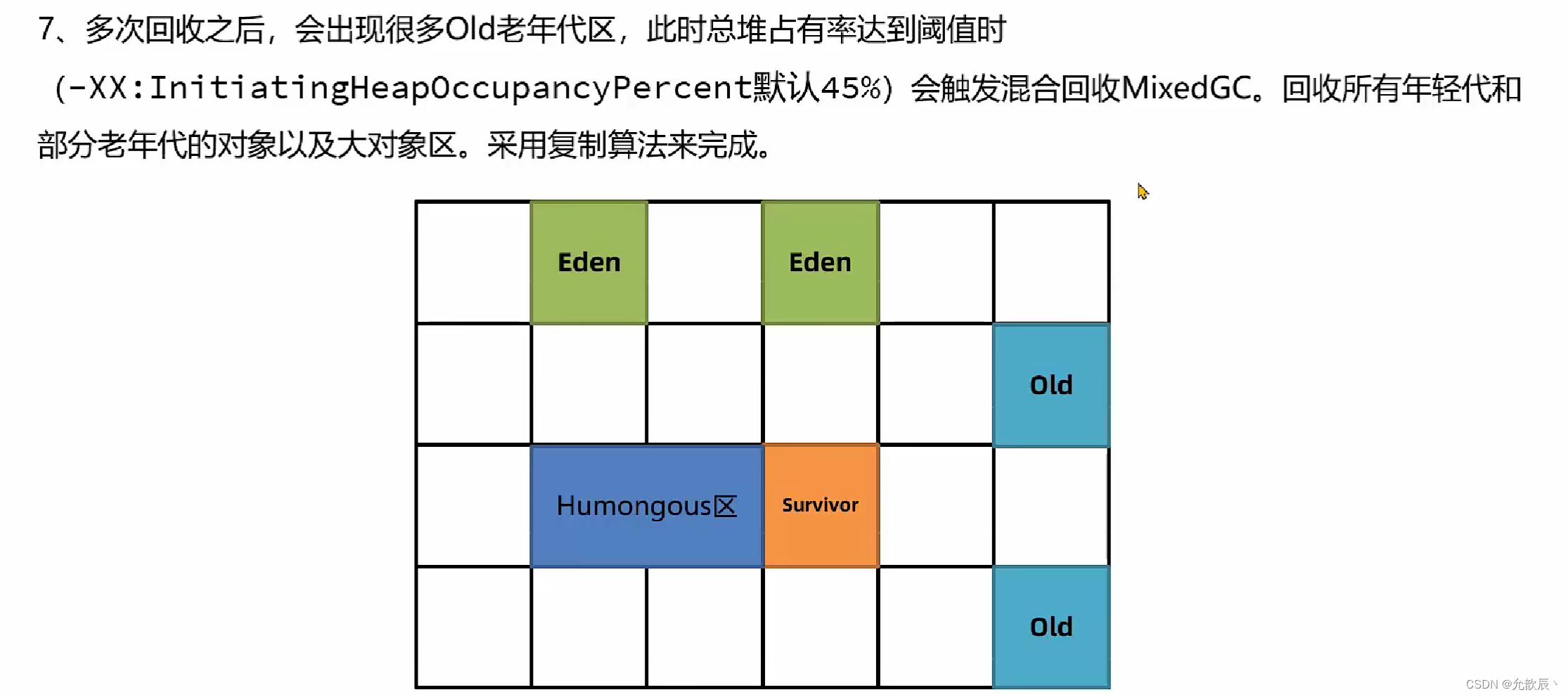 此垃圾收集器也是一款划时代的垃圾收集器,在JDK7的时候正式走上历史舞台,它是一款主要面向于服务端的垃圾收集器,并且在JDK9时,取代了JDK8默认的 Parallel Scavenge + Parallel Old 的回收方案。