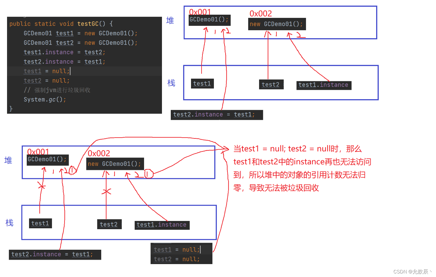 - 显式触发:通过调用 System.gc() 方法显式触发垃圾回收。虽然调用该方法只是向 JVM 发出建议,但在某些情况下,JVM 可能会选择执行 Full GC。