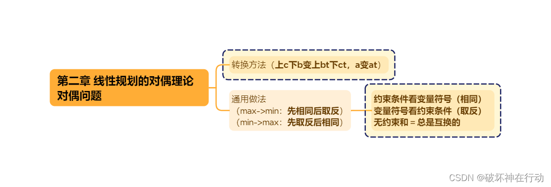 约束条件看变量符号(相同) 变量符号看约束条件(取反) 无约束和=总是互换的