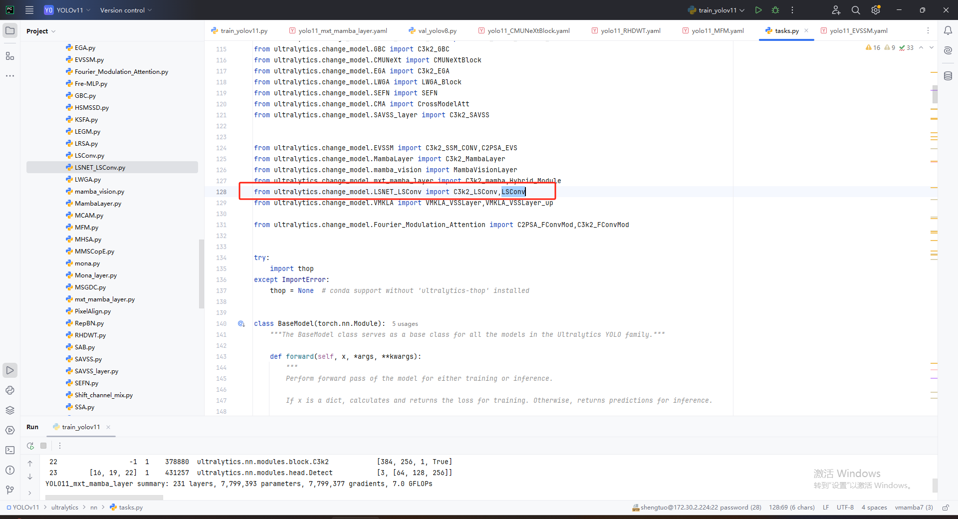 第三:在YOLOv11\ultralytics\nn\tasks.py中的模型配置部分下面代码
