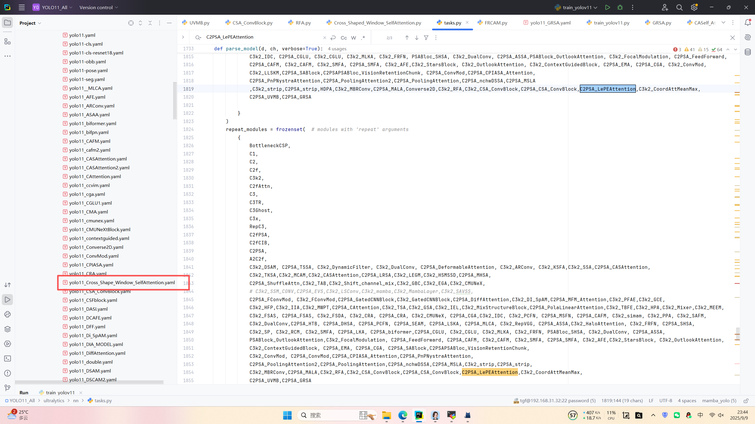 model = YOLO("/home/shengtuo/tangfan/YOLO11/ultralytics/cfg/models/11/yolo11_Cross_Shape_Window_SelfAttention.yaml")\