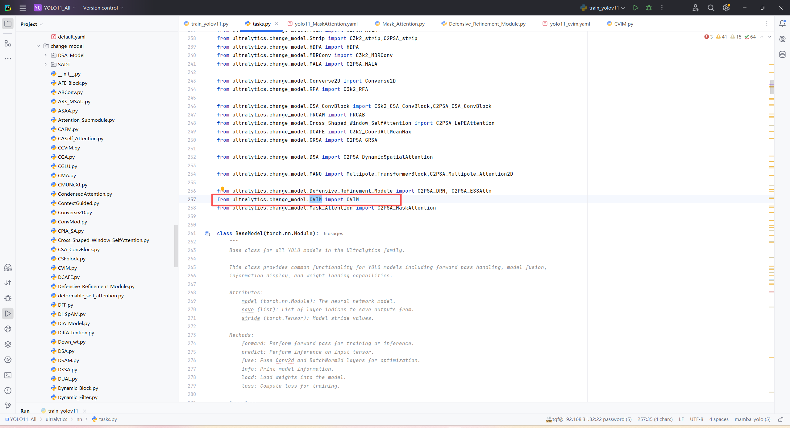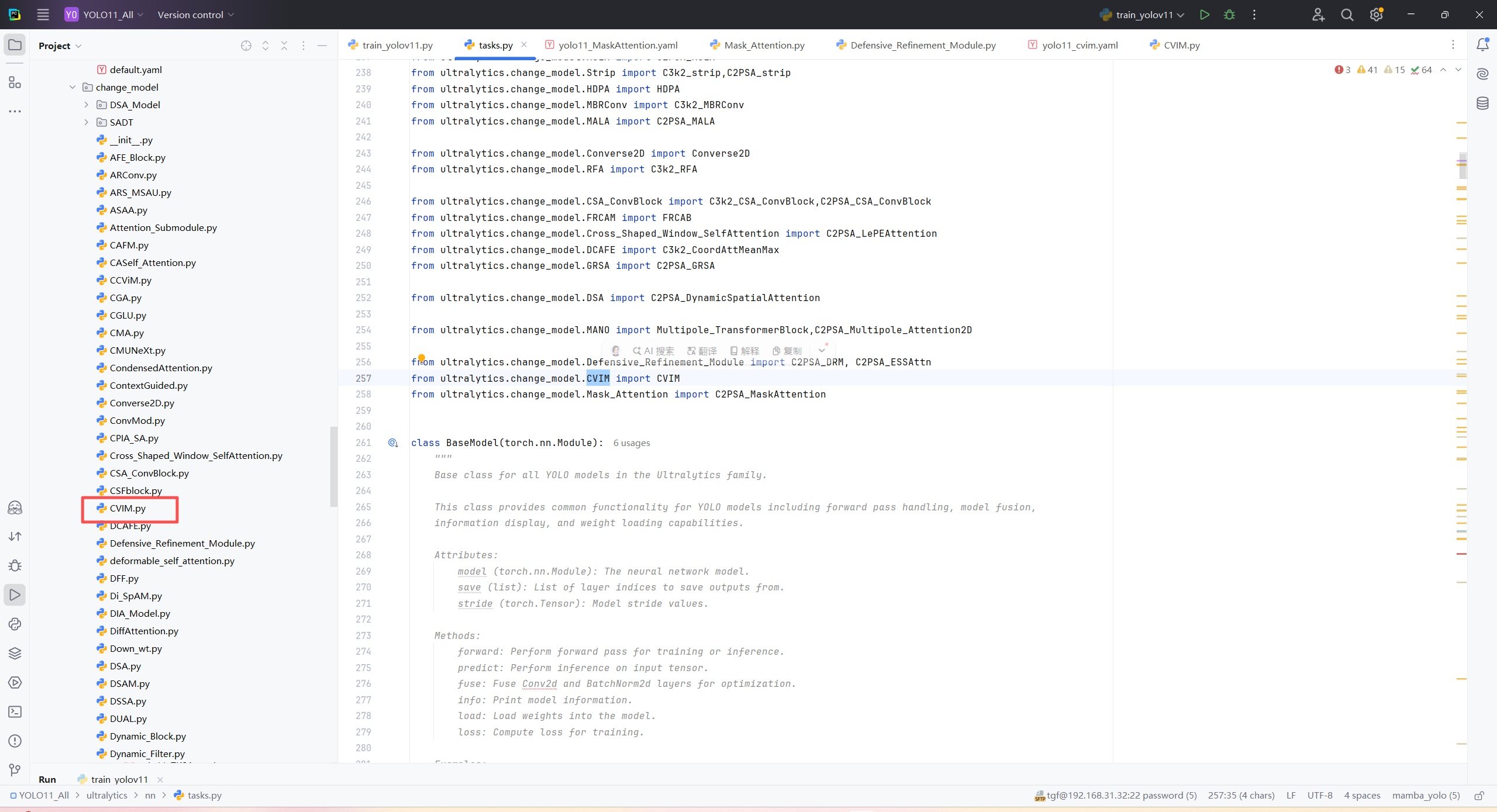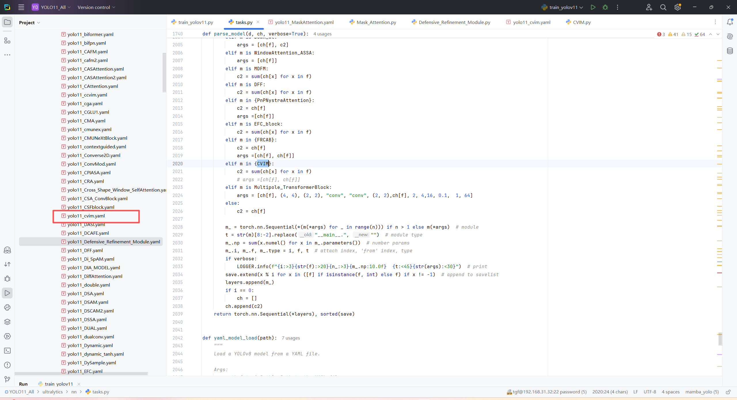 model = YOLO("/home/shengtuo/tangfan/YOLO11/ultralytics/cfg/models/11/yolo11_CVIM.yaml")\