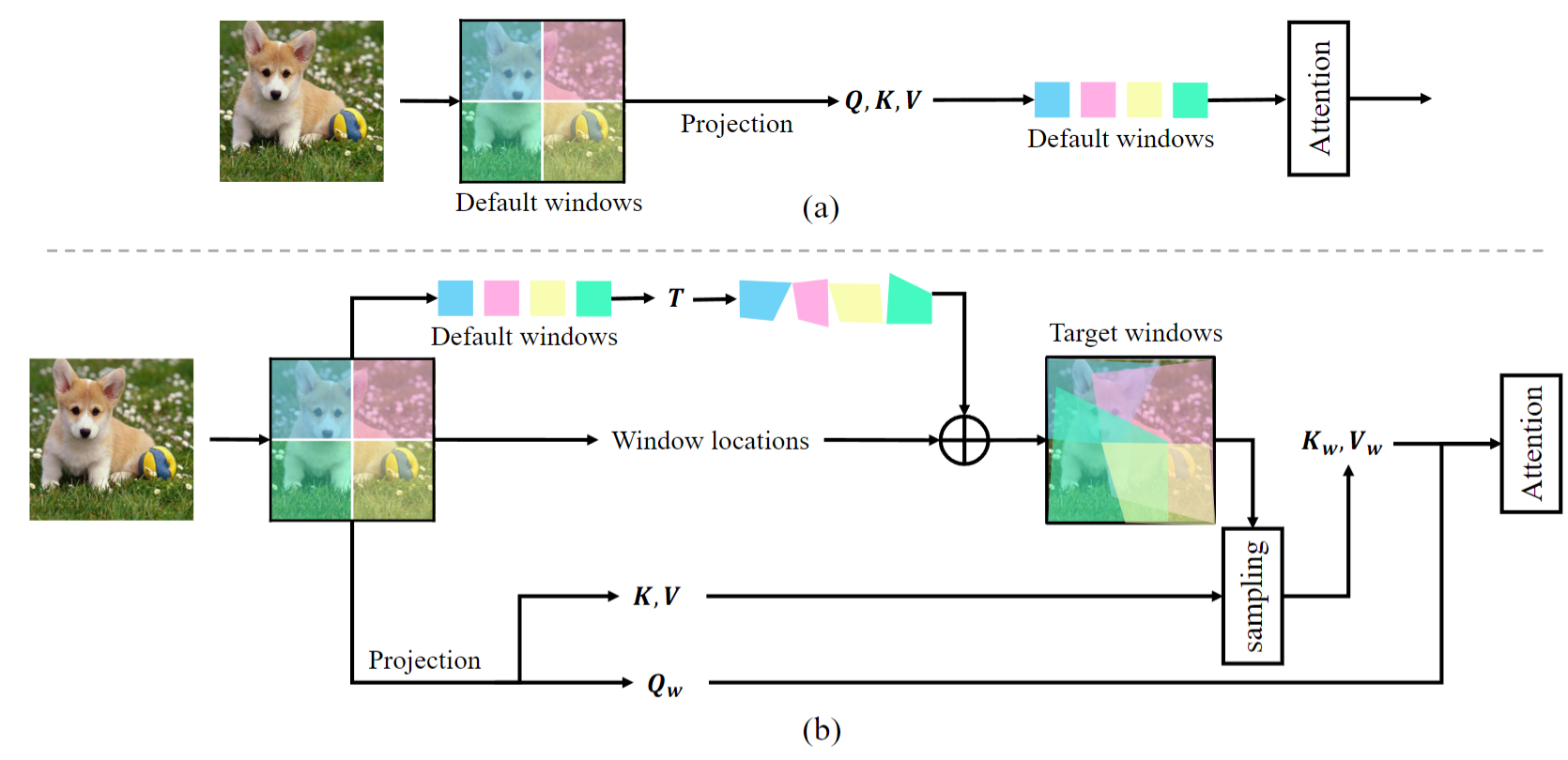 视觉 Transformer(ViT)凭借对图像补丁间长距离依赖的建模能力,在各类视觉任务中展现出优异性能,但原生自注意力机制的二次计算复杂度,使其难以处理高分辨率图像。为解决这一痛点,基于窗口的注意力机制应运而生,它将图像划分为非重叠的固定尺寸窗口,仅在窗口内进行注意力计算,在保证性能的同时,大幅降低了计算复杂度和内存占用,推动了平原型和分层型视觉 Transformer 在分类、检测、分割等任务中的广泛应用。然而,这种人工设计的窗口存在固有缺陷:窗口形状多为固定的正方形或矩形,与输入数据的特性无关,无法灵活适配真实场景中目标的多样性 —— 现实图像中的目标不仅尺寸差异显著,还可能呈现不规则形状和任意方向,固定窗口既难以完整覆盖异形目标,也可能因窗口边界限制,无法捕捉目标相关的长距离上下文信息,进而制约了模型对复杂目标的特征提取能力和整体性能表现。在此背景下,需要一种数据驱动的注意力窗口设计方案,打破固定窗口的束缚,让注意力区域能够自适应匹配目标的实际形态,QA(四边形注意力)机制由此被提出。