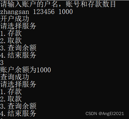 3.设计一个银行账户(Account)类,包含户名、帐号以及当前余额属性,可完成开户、存款、取款和查询余额等行为。银行账户类的定义如下: