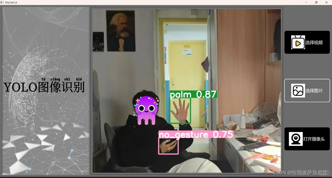通过对yolov8模型的训练来实现模型对19种不同手势识别的功能,制作简易ui界面并实现3种不同的按钮功能(视频检测、图片检测、摄像头实时检测),最后完成部署以实现项目的脱机运行并应用于实际应用中。