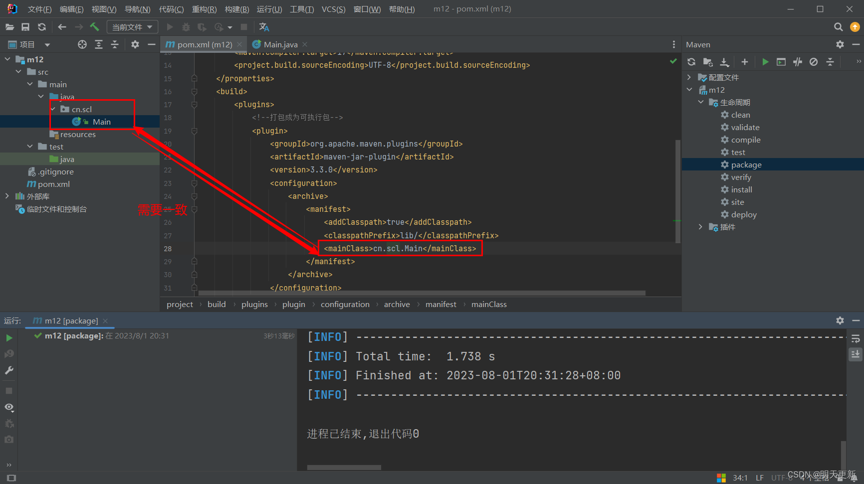 <mainClass>cn.scl.Main</mainClass>