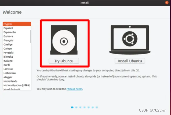 - 然后选择 `Try Ubuntu`这样的好处是,我可以先使用Gpart进行分盘。