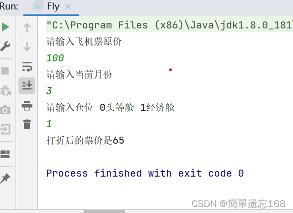需求:机票价格按照淡季旺季、头等舱和经济舱收费、输入机票原价、月份和头等舱或经济舱。