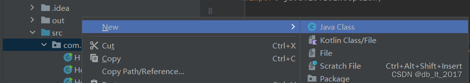 点开src包下面自己创建的文件夹,在文件夹右键点击New的Java Class